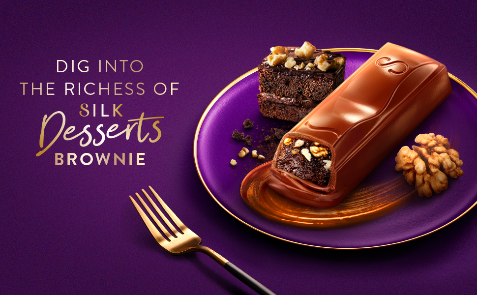 Cadbury Dairy Milk Silk Desserts is about the unique experience of bringing the best of both worlds of chocolate and dessert together. Indulge in the decadence of rich, velvety Cadbury Silk wrapped around a sumptuous walnut brownie center, creating a blissful fusion of smooth Silk and gooey goodness of Dessert Brownie in every bite. Perfect as a gift pack or to enjoy alone. The perfect finale to any meal, this premium chocolate bar is a luxurious treat that will tantalise your taste buds. Get ready to indulge in pure pleasure with this ultimate dessert treat. Every bar of Cadbury Dairy Milk Silk is made from sustainably sourced cocoa. It is suitable for vegetarians.